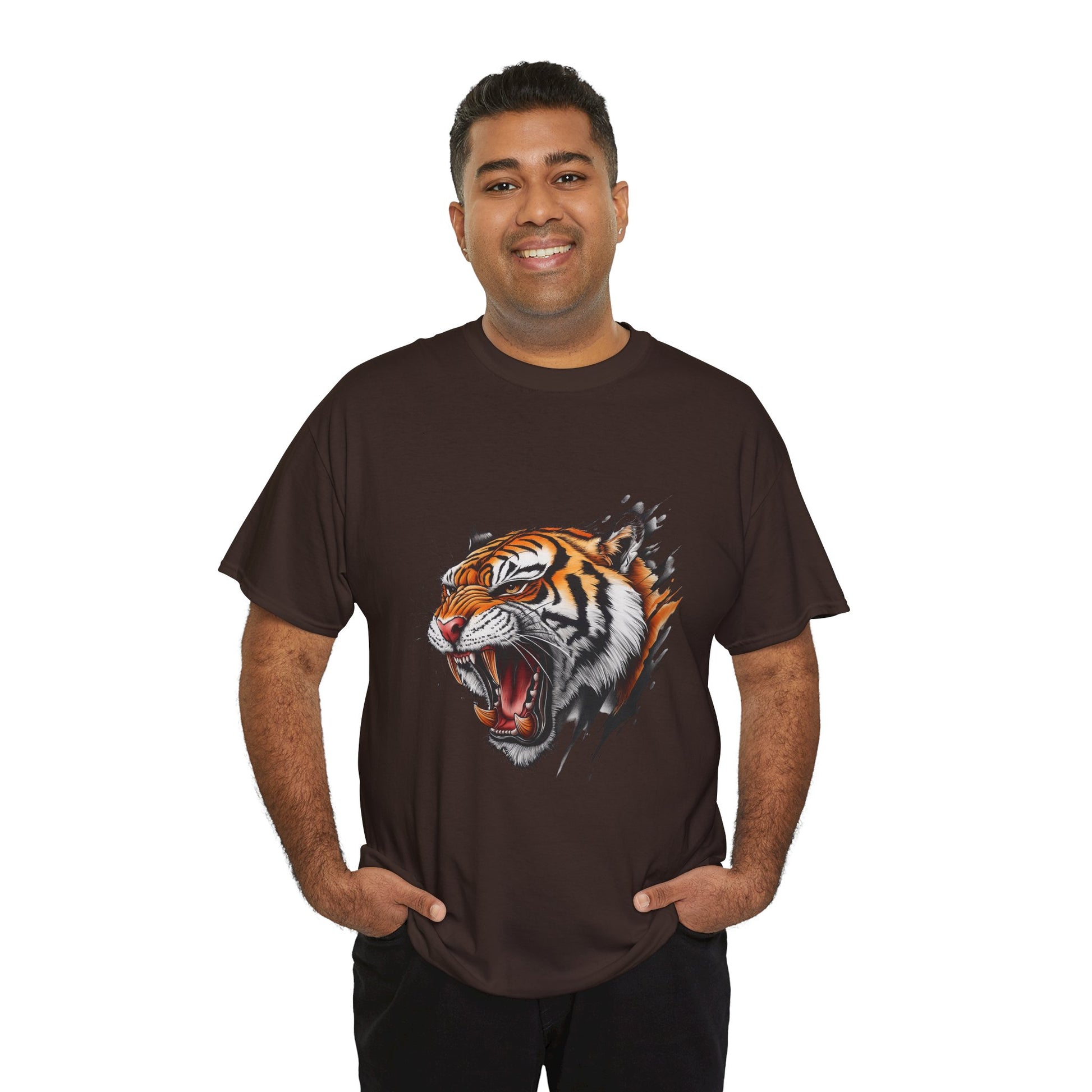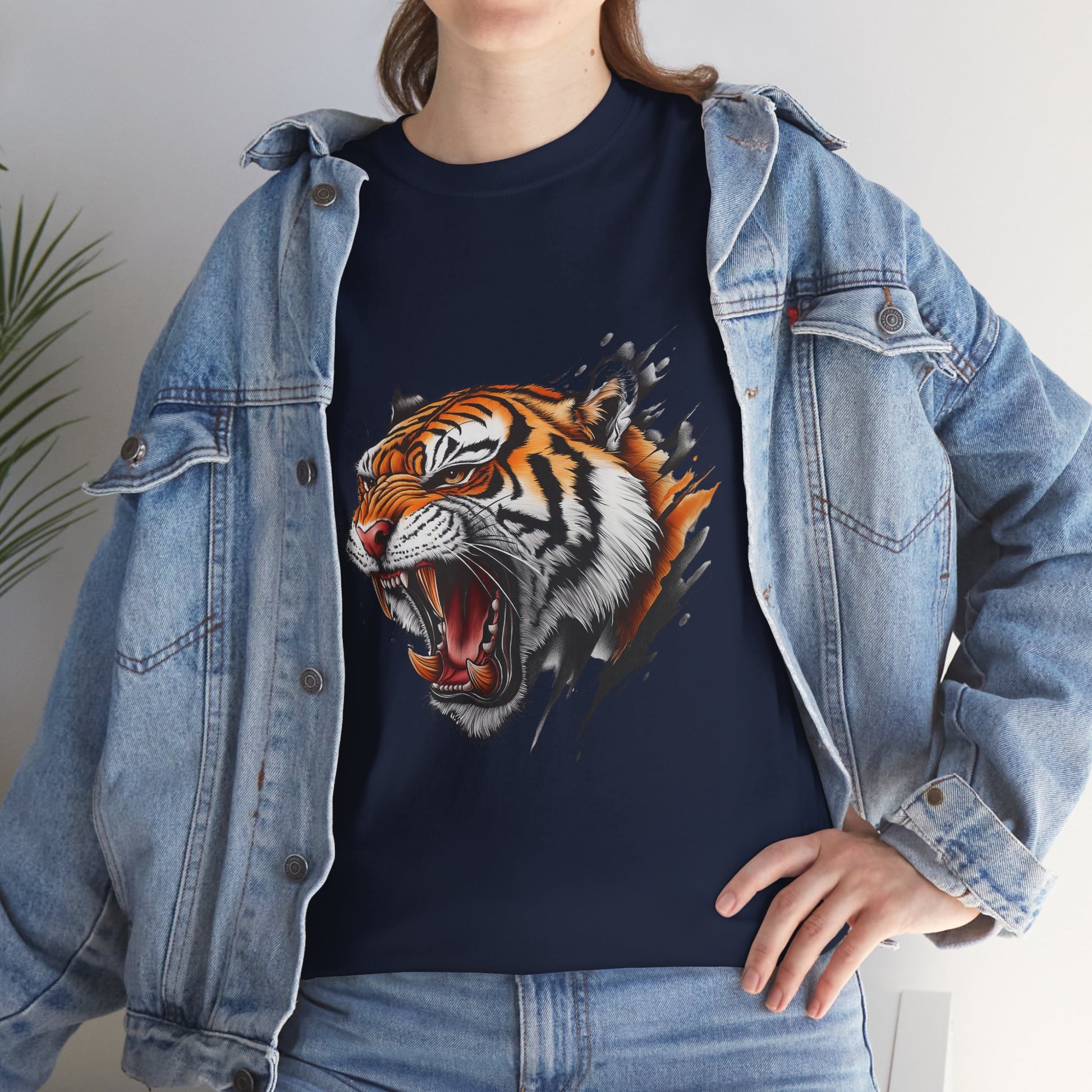 Unleash your inner wildness with this bold T-shirt. The design captures the shocking moment of a fierce tiger roaring, blending animal power with modern street trends. Made from 100% pure cotton, this T-shirt is soft, comfortable, breathable, and durable. Ideal for animal lovers, street style enthusiasts, and personality pioneers—perfect for everyday wear or as a fashion statement.